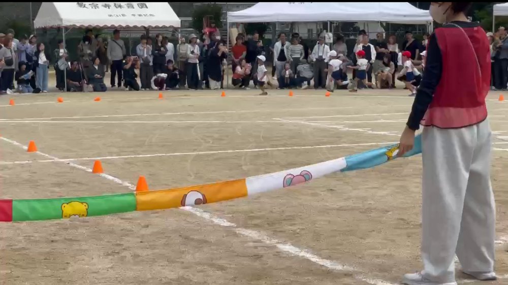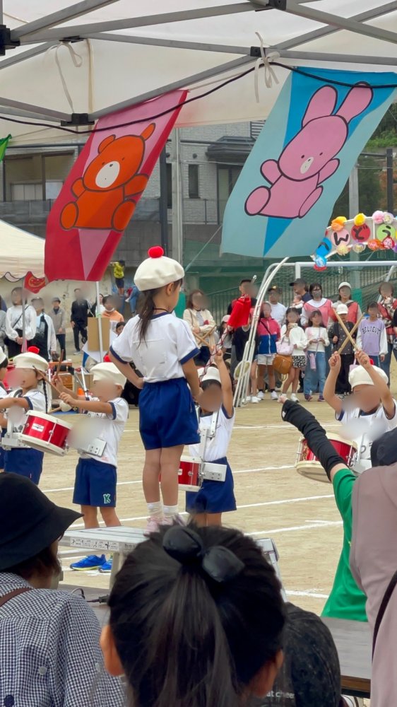 年長さんの鼓隊の演奏で幕が開き、かけっこやおゆうぎ、リレーとたくさんの競技が繰り広げられました。保護者競技の玉入れも白熱し、運動会を盛り上げてくださいました。