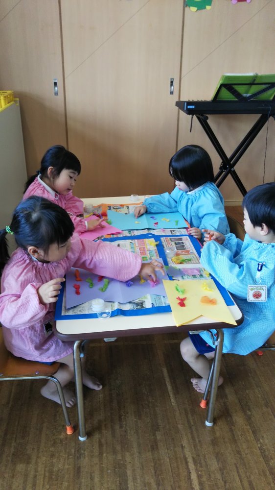 新年度がスタートしました。初々しい制服姿で登園する姿がとても可愛いです。そんな中ゆり組になって初めての製作を2つしました^_^