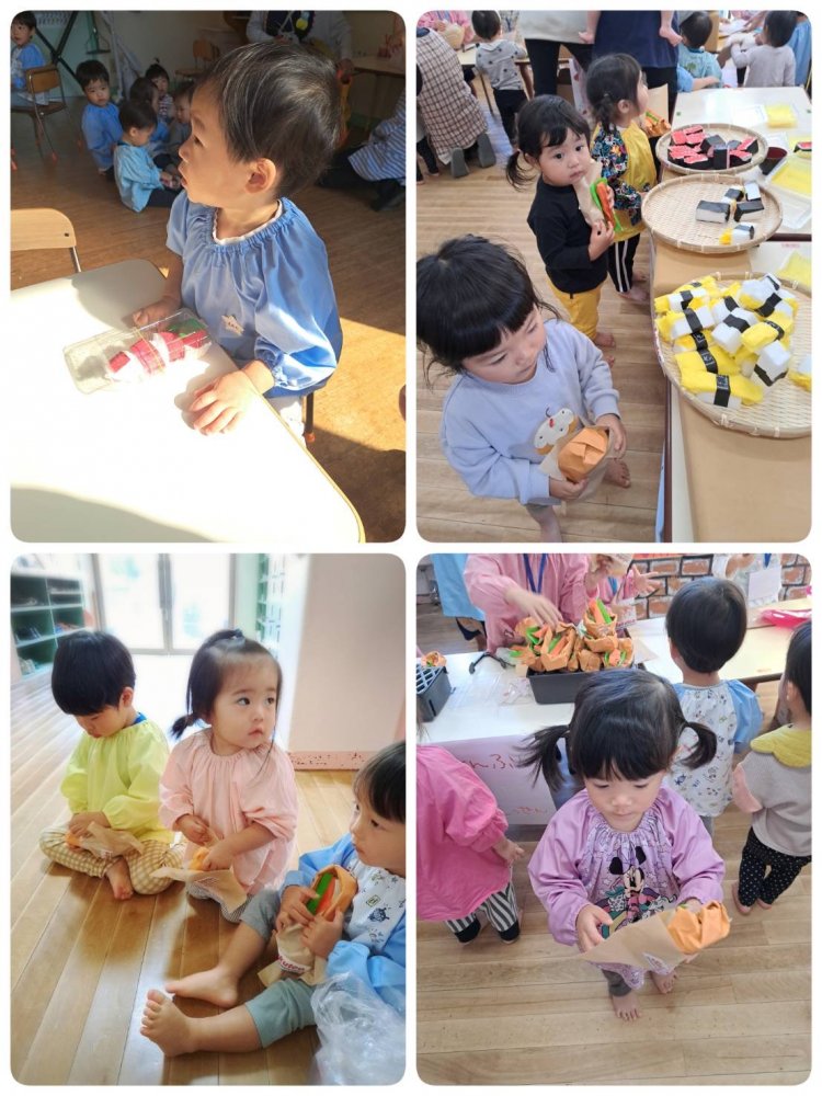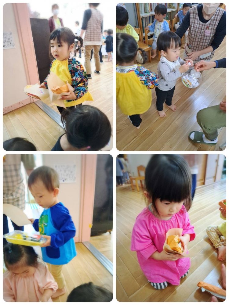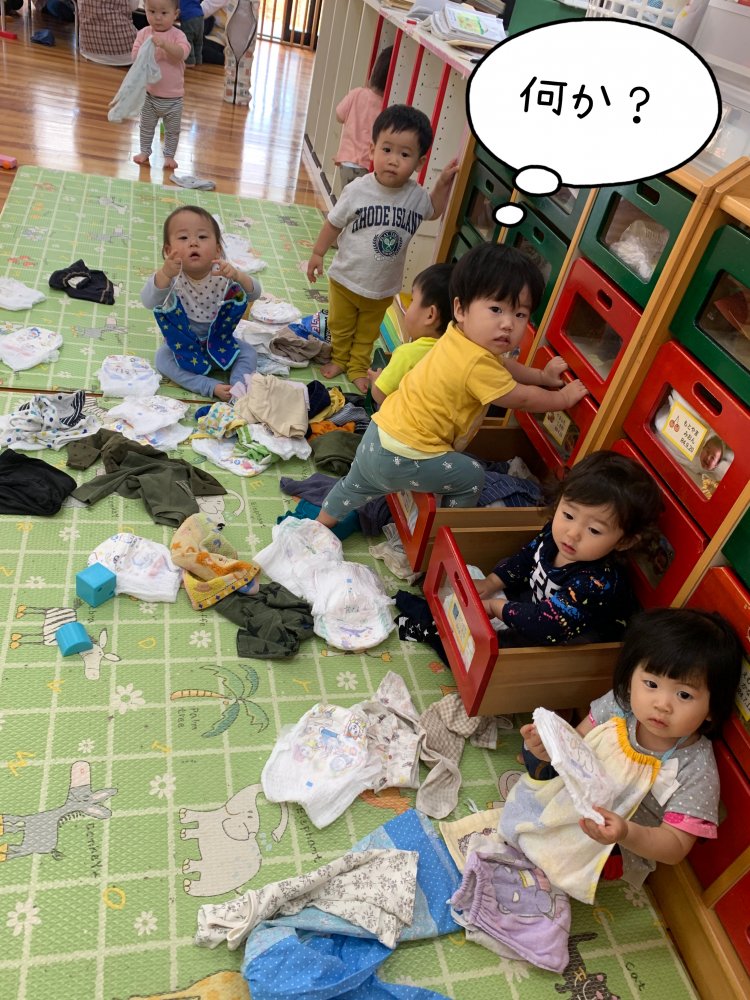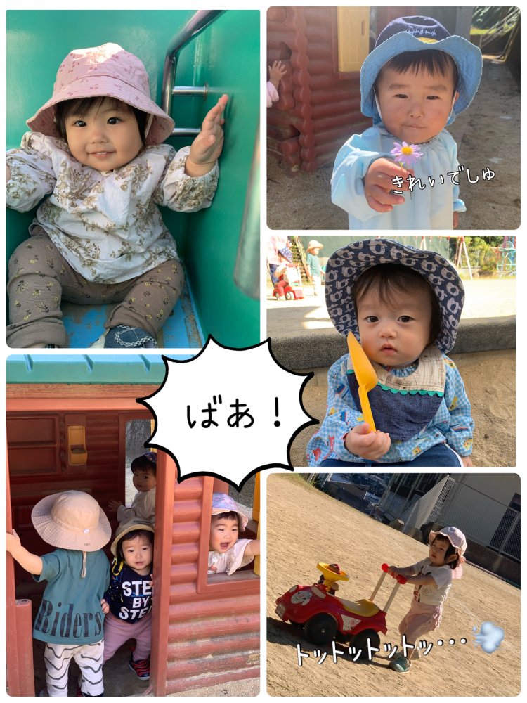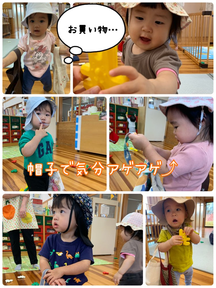 お外遊びのおかげで、帽子が好きな子どもたち。お部屋でも帽子を被っておつかいごっこ(?)なども楽しんだり😅笑
