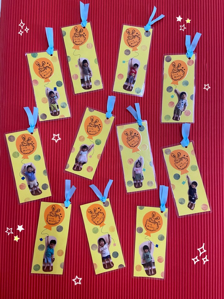しおりの裏側には、可愛いスタンプをたくさん押して…完成したのが、こちら☺️✌🏻