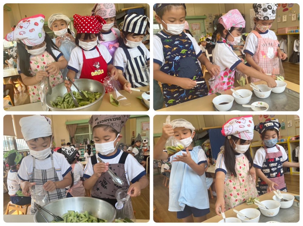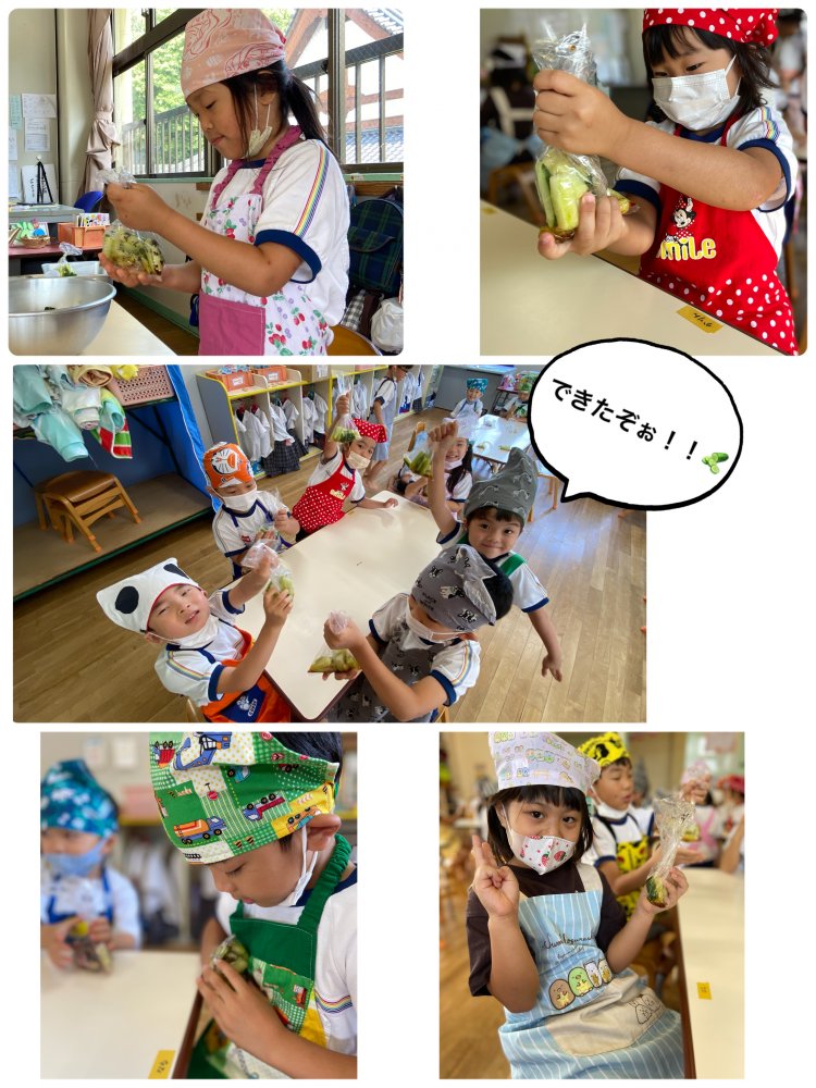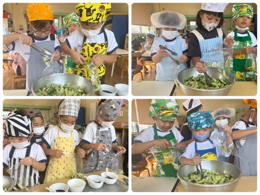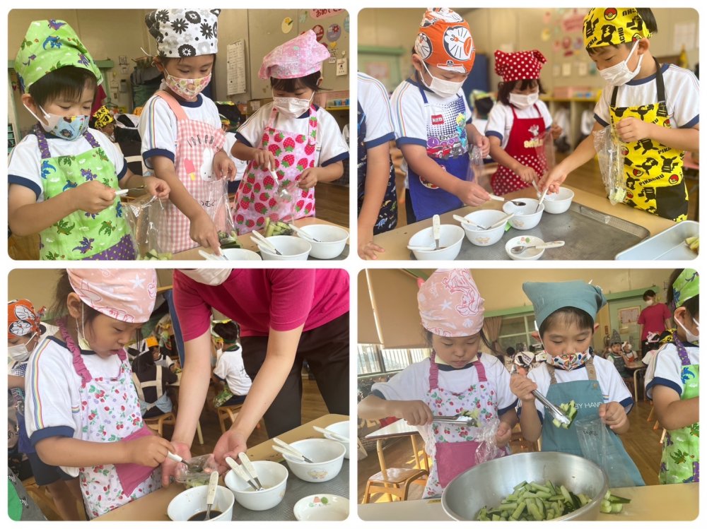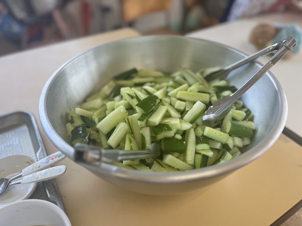 その収穫した野菜たちは給食室の先生方に美味しく調理して頂いているのですが、自分たちでもしたい!と思い、急遽クッキングを行いました🥒