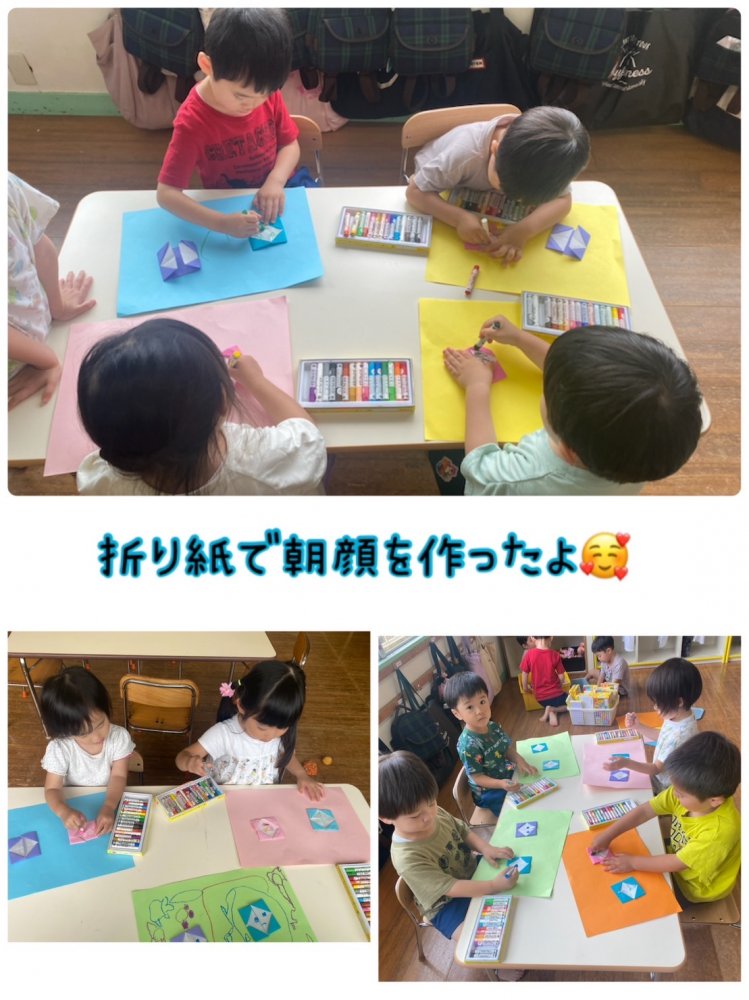 今回アサガオの折り紙に挑戦!