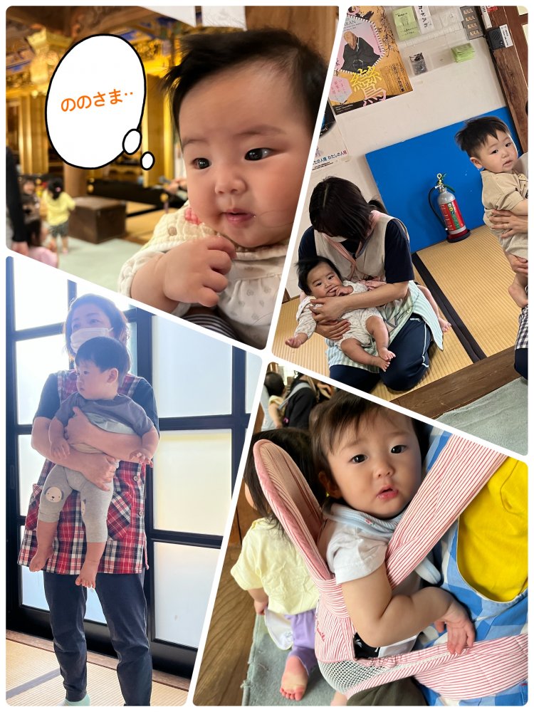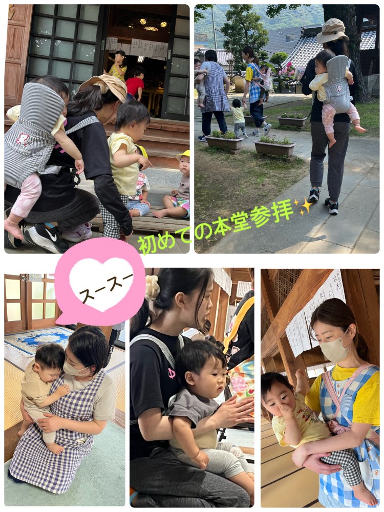 本堂の中ではお兄さんお姉さんが沢山✨その中で保育士の膝に座ったり、おんぶされたり、眠気との戦い✨終わる頃には「スースー」と夢の中・・の子もいましたよ💤💤