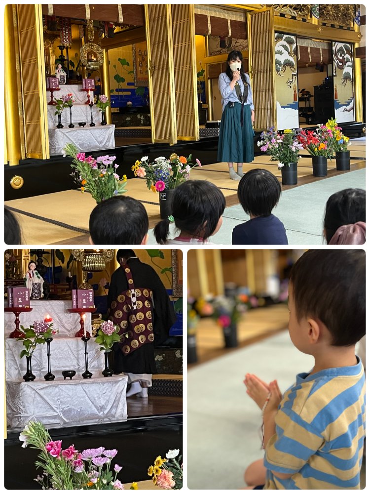 絵画活動で花まつりの「お釈迦様」の絵も描いたので、覚えていたようでした♪