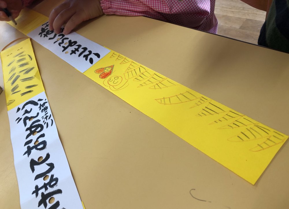 トラ模様は子ども達が描きました。が、なーんとなく2月の3日に来る人を感じさせる模様を描き始め、面白かったです(^^)