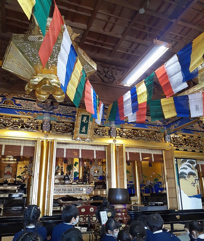 すみれ組さんも毎日笑顔で登園してくれています。今日は花まつりに参加してきました。本堂もいつもとちょっと違うんです。