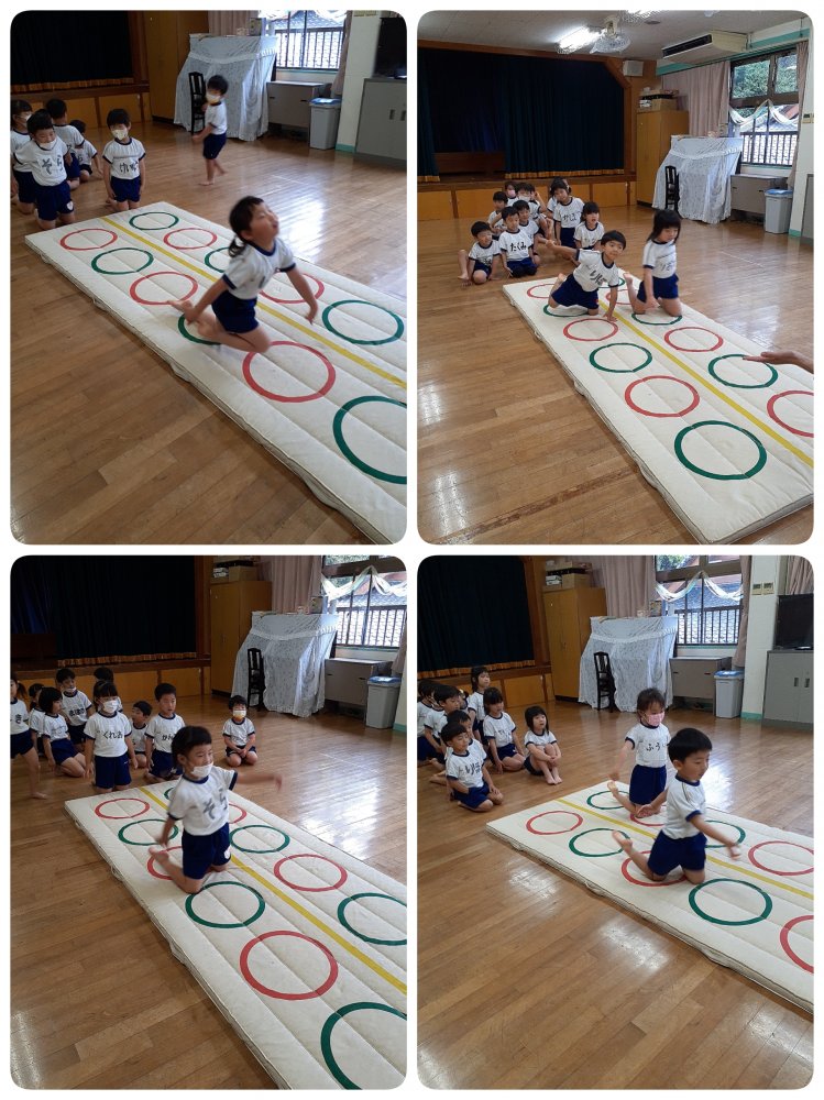 今日は動物に見立てたジャンプをして身体のバランスや筋力チェック☺️