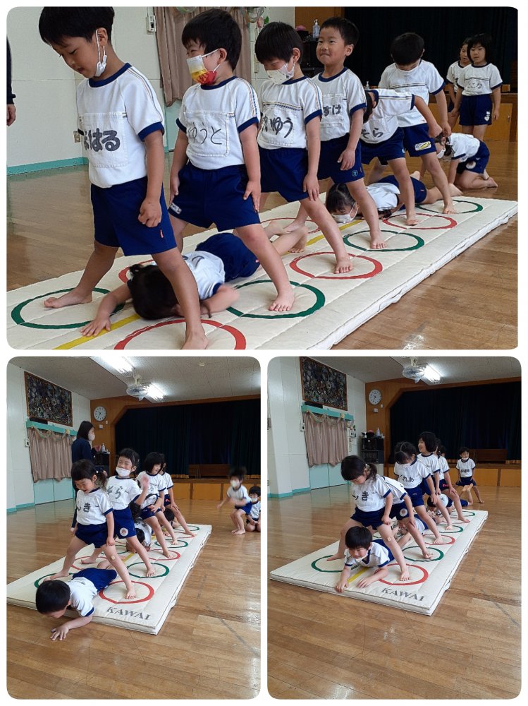 『さすが年長さん!』に嬉しそうでした😄😄膝を付いて足をあげて歩くのは腹筋を使うので難しいそうです!