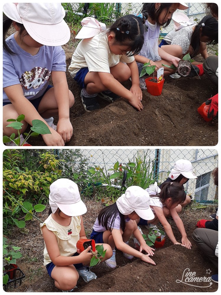 『サツマイモは土の下に出きるもんね!』と言いながら丁寧に植えてくれました🍠美味しいサツマイモが出来ますように。