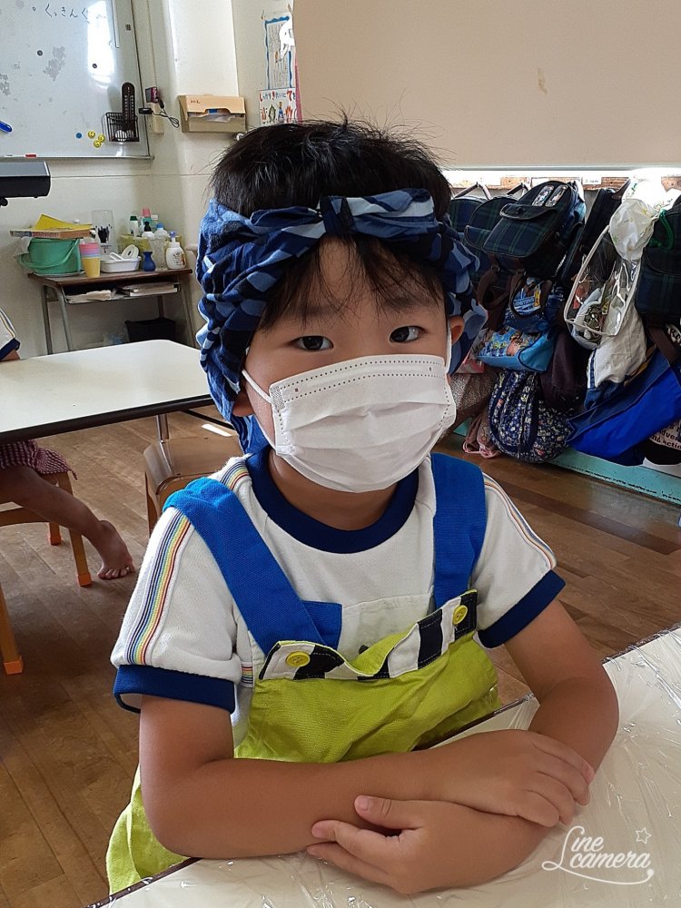 『先生!Y君が祭になっとるー!』Y君自分で頑張りましたが。逆だったようです😁かわいくて思わずパシャリ📷️