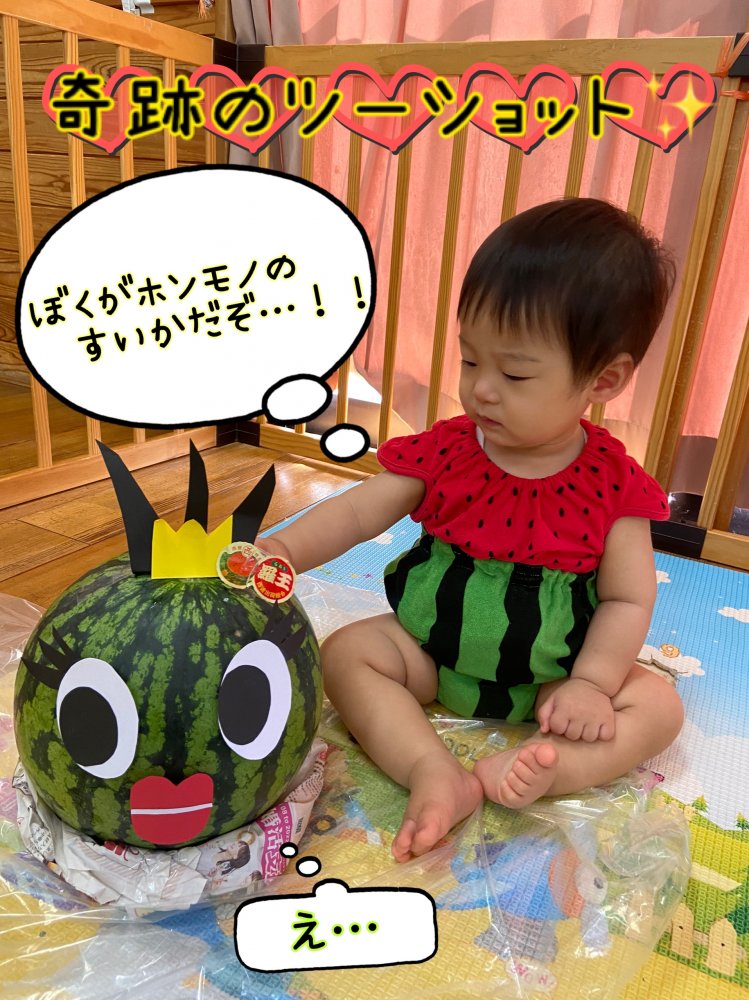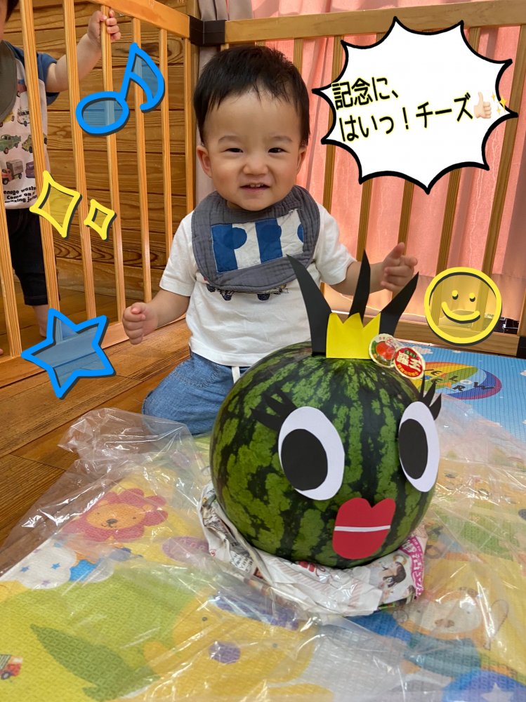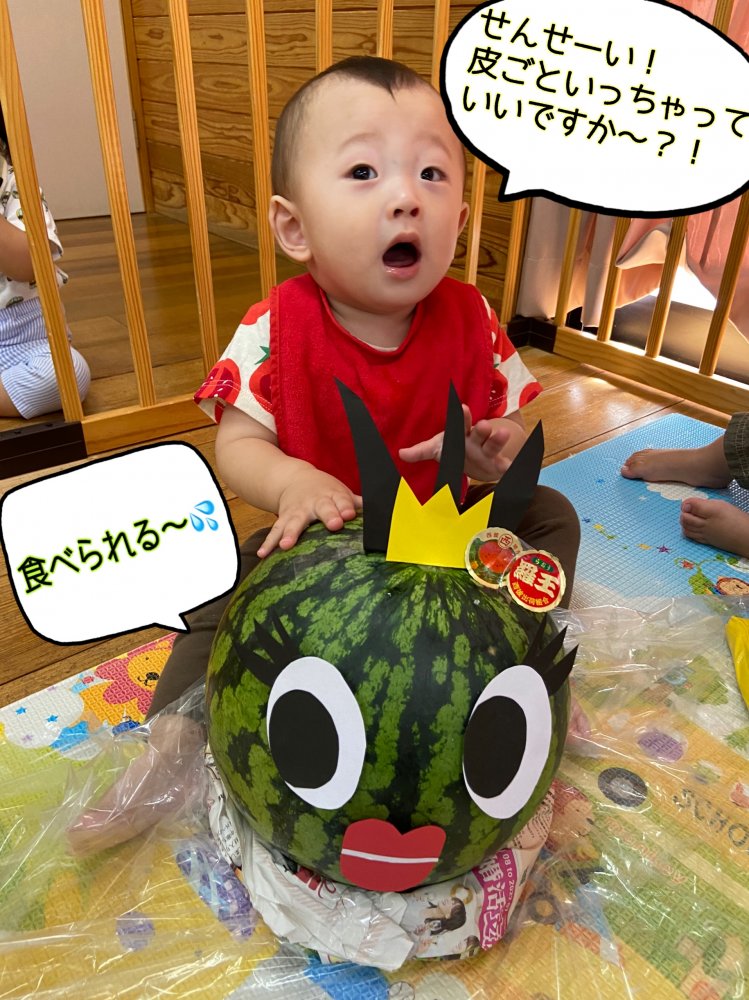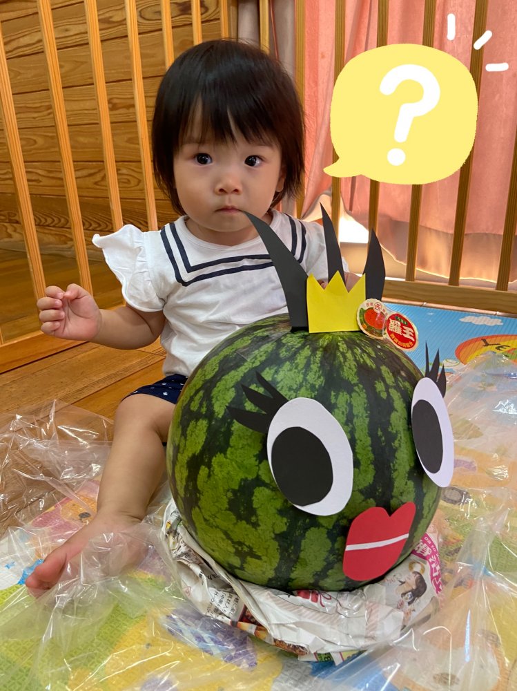 初めて見る、大きなスイカにみんなびっくり😳