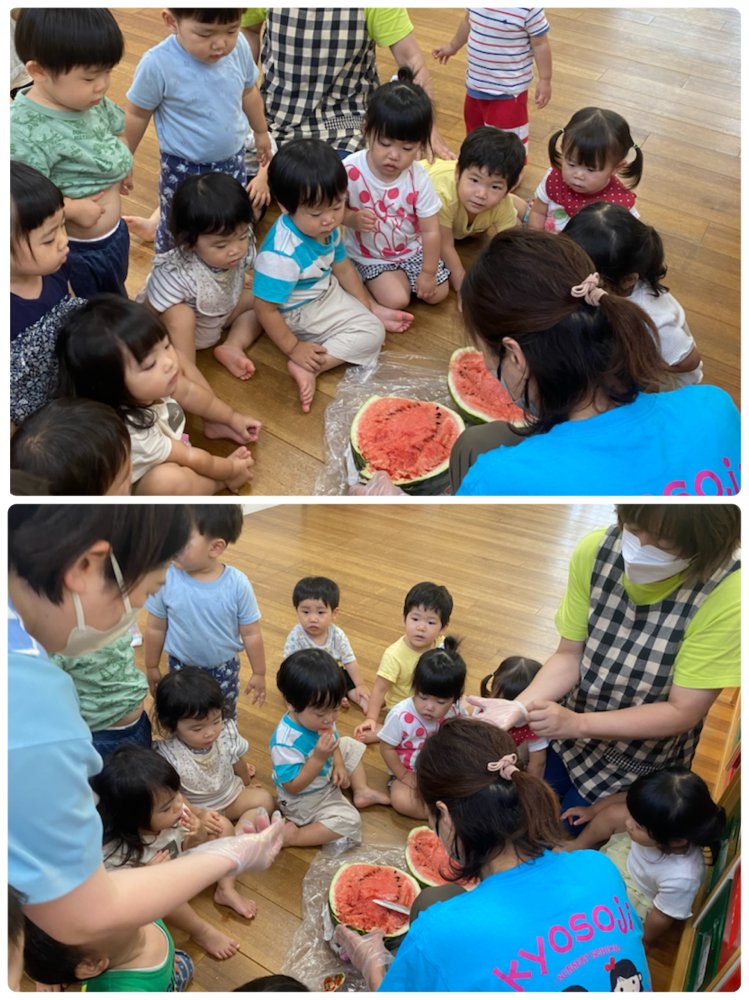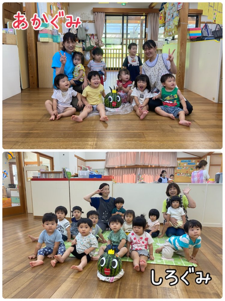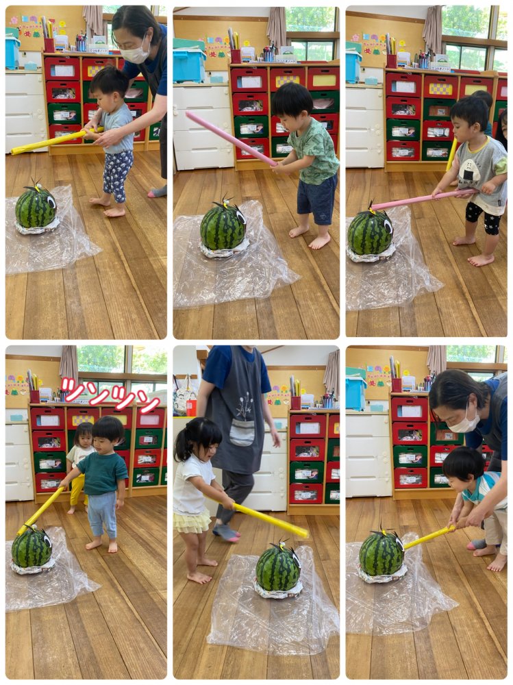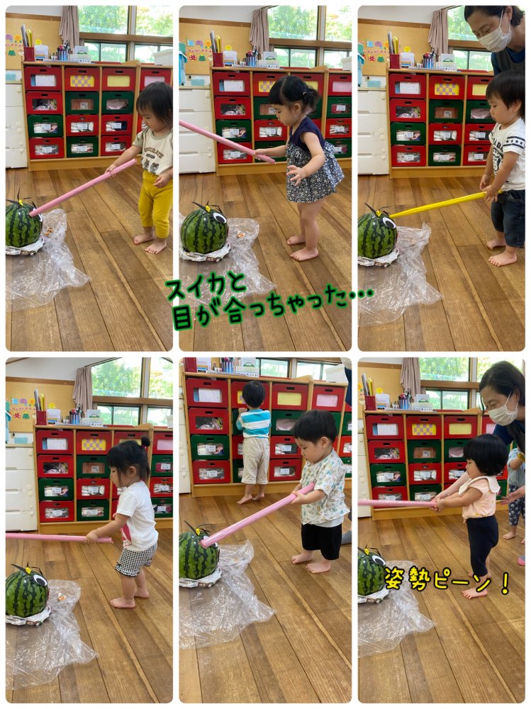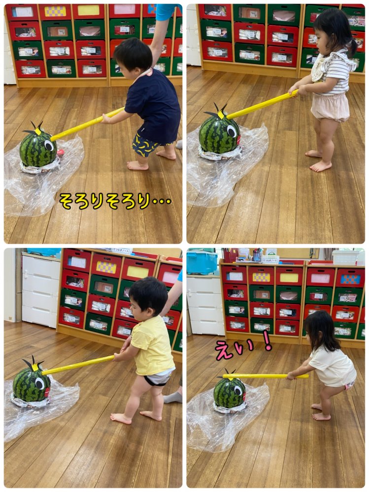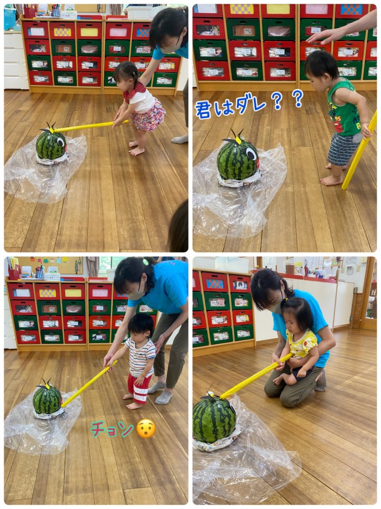 可愛いスイカと目が合って優しくツンツンしたり…力いっぱい叩いてみたり…😊