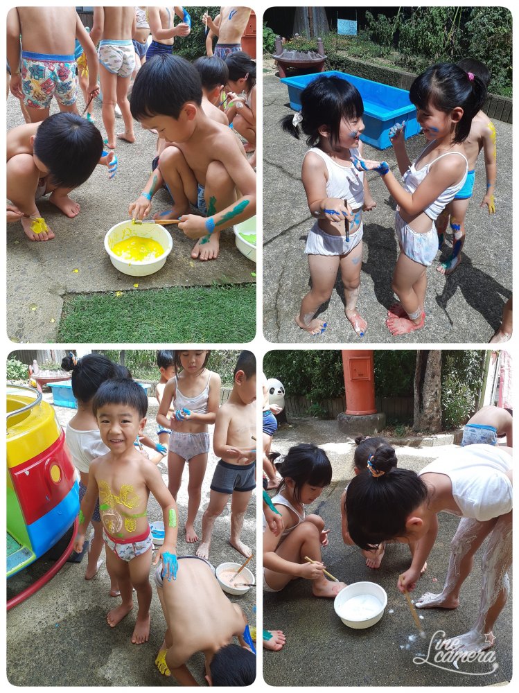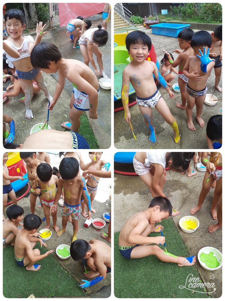 昨日はボディペイント🖌️をおこないました。専用の絵の具で体中にペイントしました😄