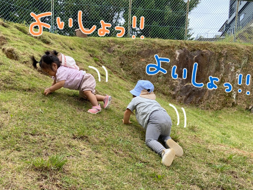そして、「よぉーし、僕たちもがんばるぞ〜!」と芝生の斜面で足腰のトレーニング💪🏻