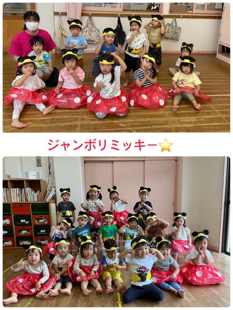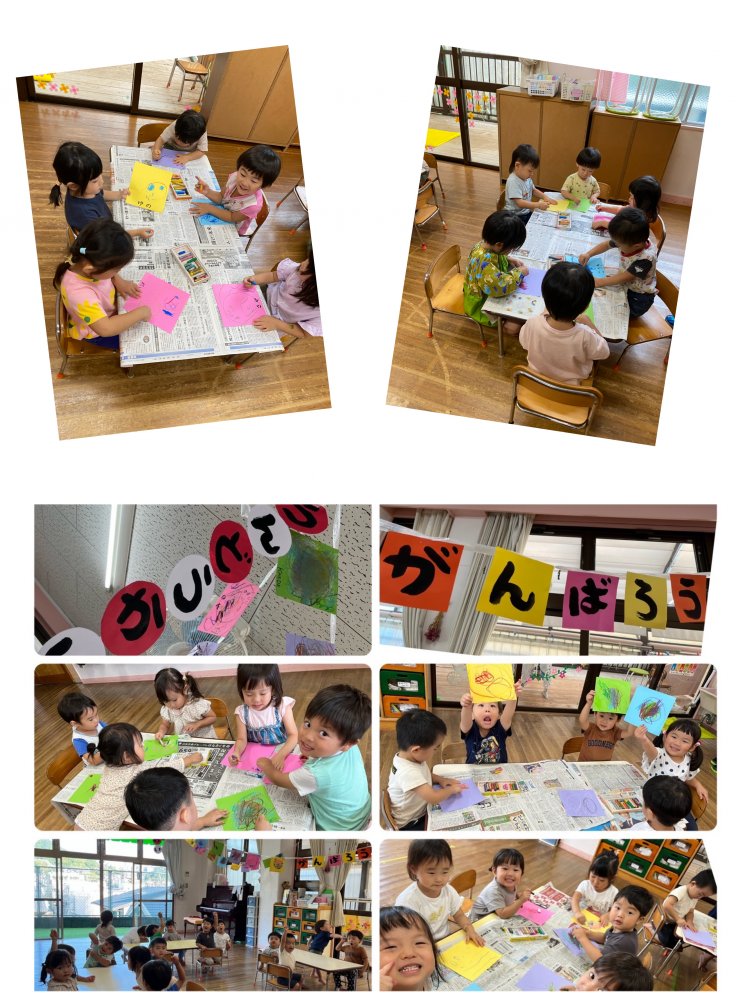 子供達と万国旗🇯🇵も作りました✨なんとお遊戯のジャンボリミッキーを描く子もいましたよ✨