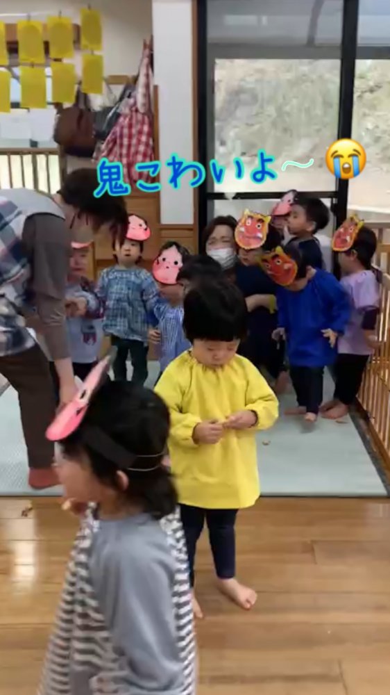『悪い子はいないかぁ!』『お友達に意地悪してないかぁ!』鬼に聞かれても固まる子供達です😂