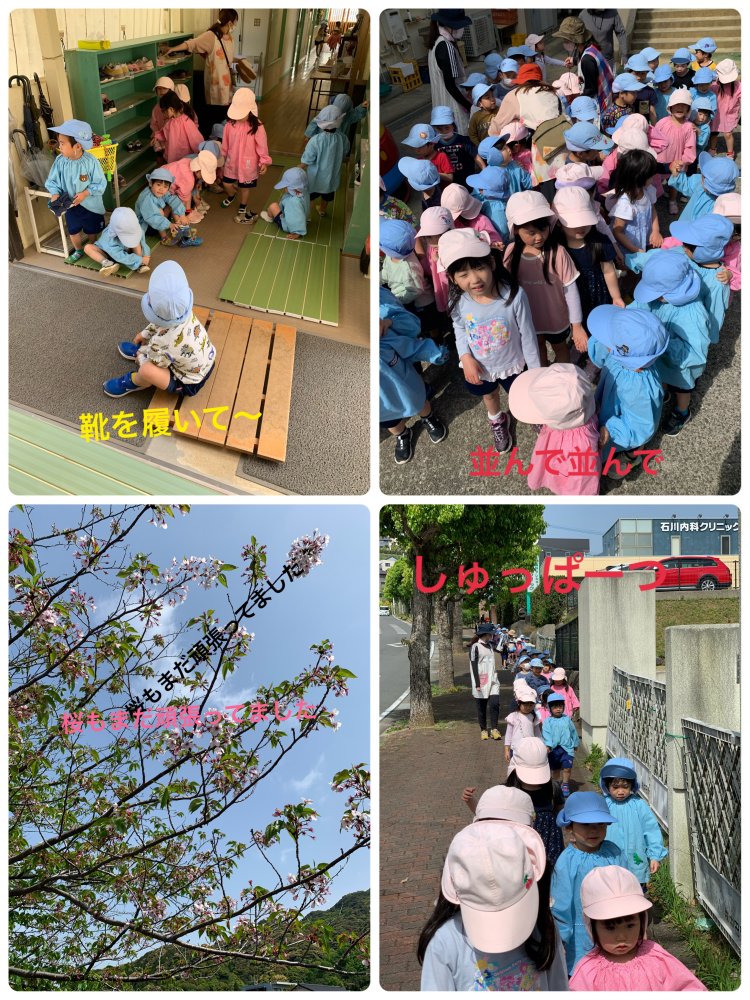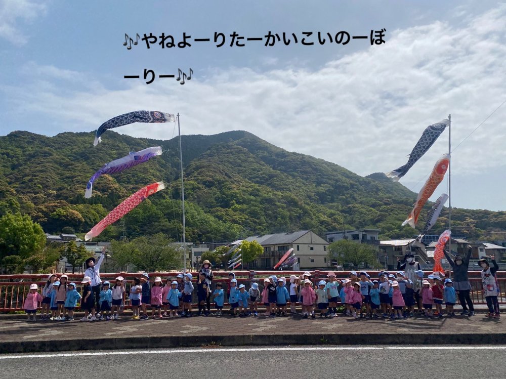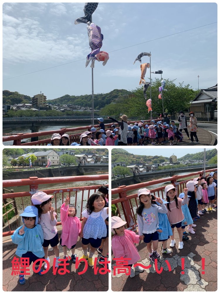 すみれぐみさんに手を繋いでもらって鯉のぼりを見に行きました✨