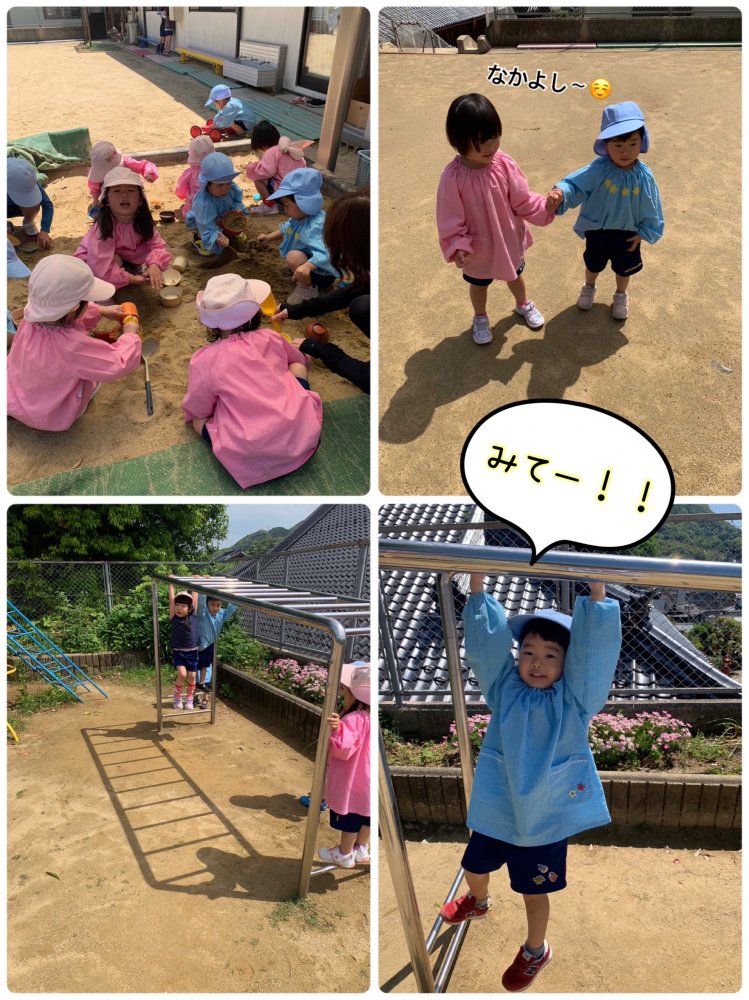 休み明けのゆりぐみさんは「外に行きたーい!!」「外がいいー!!」と園庭でたくさん遊んでいます😊