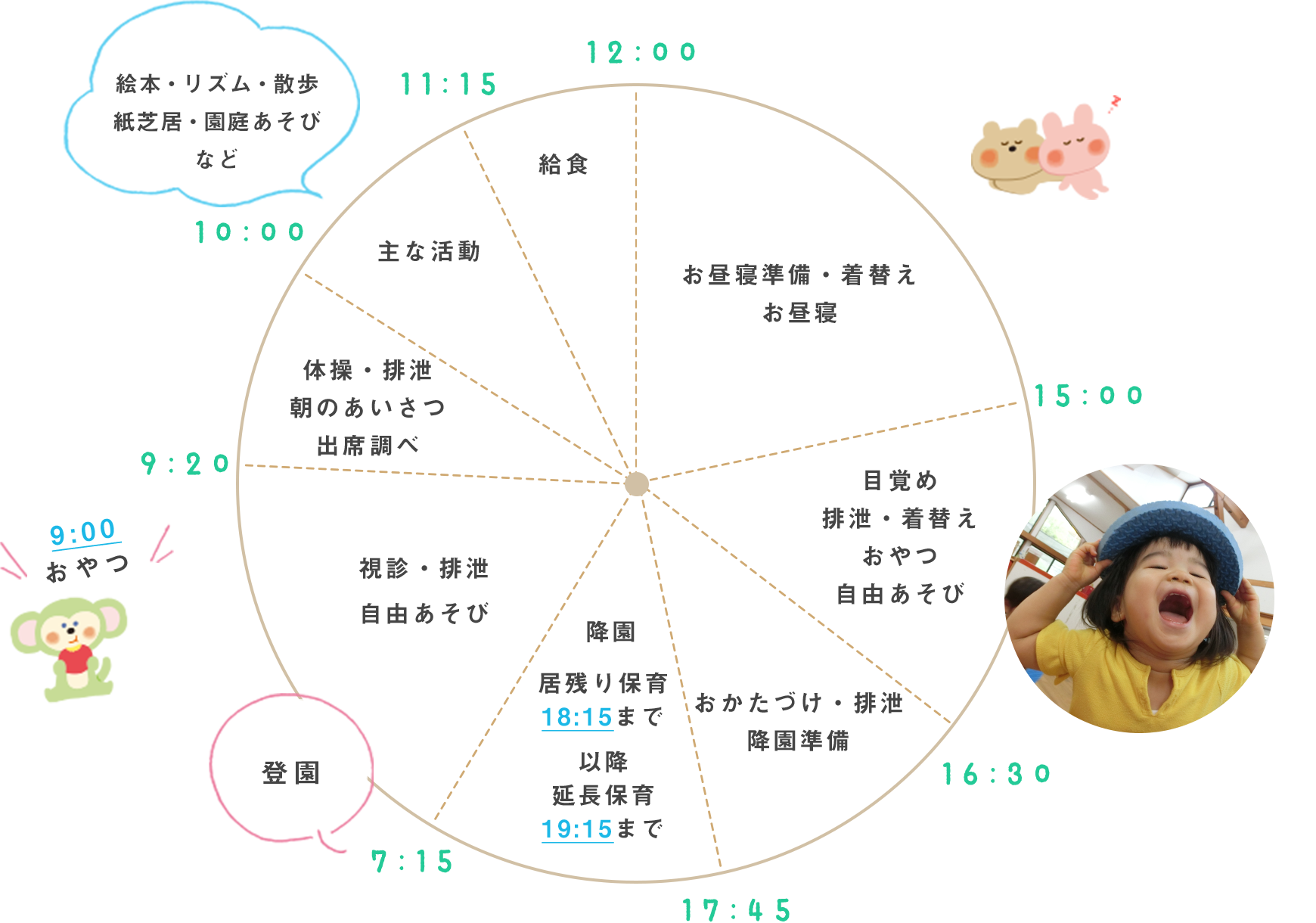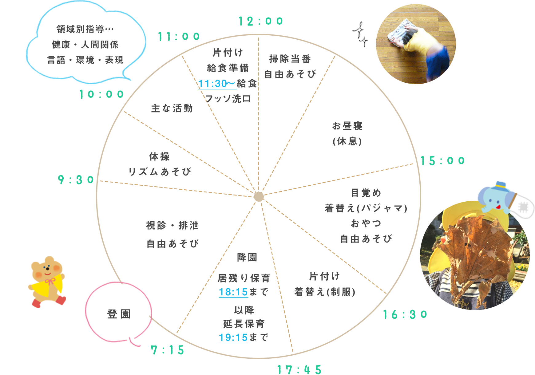 | 18:15 | 延長保育(19:15まで) |
